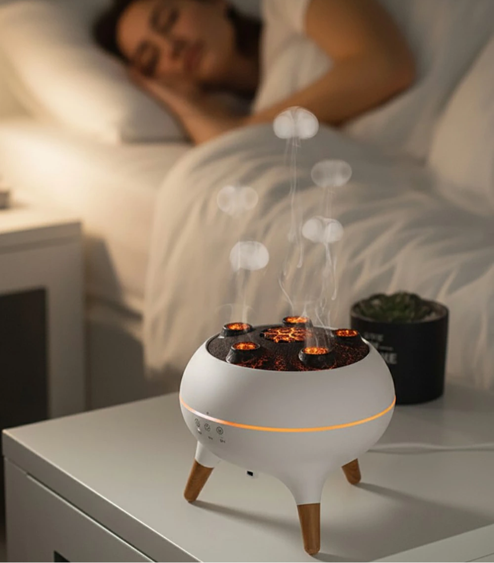 音や声に合わせてミストが上下に動き、柔らかなリズムを表現。静かな時間や読書、リラックスしたい夜に最適です。 -